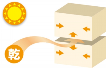 ▲梅雨などの季節には膨張して、湿気の侵入を防ぎます。