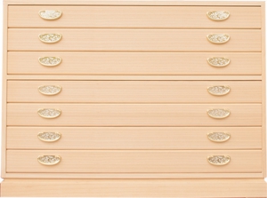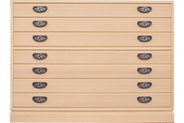 総桐100%の7段引き出しタンスです。「本格的なサイズの桐タンスはちょっと…」というお客様におすすめです。着物・帯・小物など収納量にあわせて段数をお選びいただけます。また、お着物を新しく購入され、収納数が増えた場合には、必要段数をお買い求めいただき、上に重ねていただくことができます。![]()